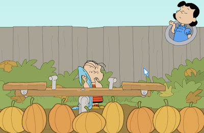 A tricker-treat bag. Yay. How generous. In my opinion, people in Great Pumpkin Island are the laziest people ever. And they also think they make good jokes by promising sarcastically generous gifts.